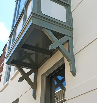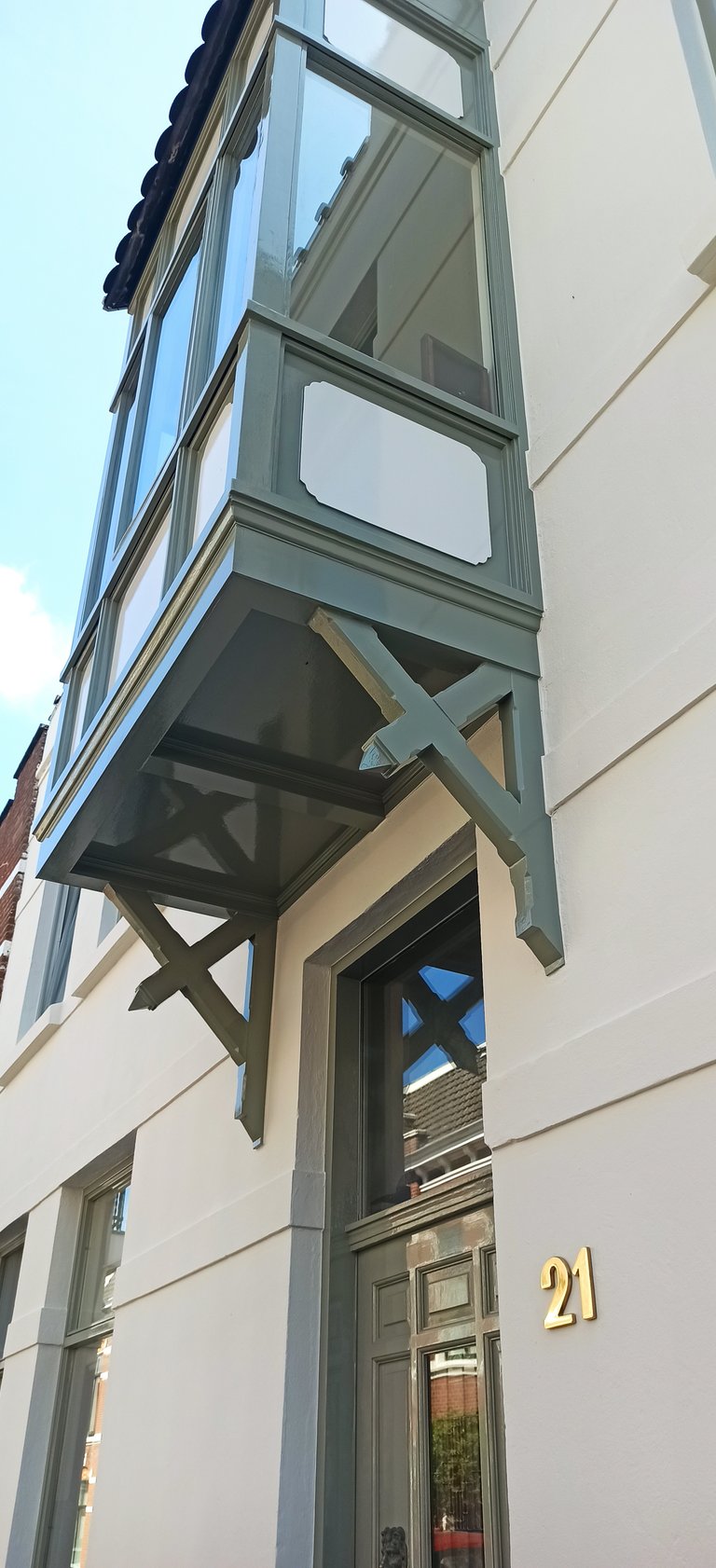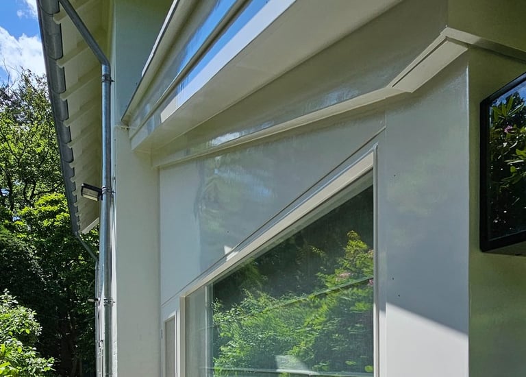 Strak geschilderde houten ramen, netjes afgewerkt.